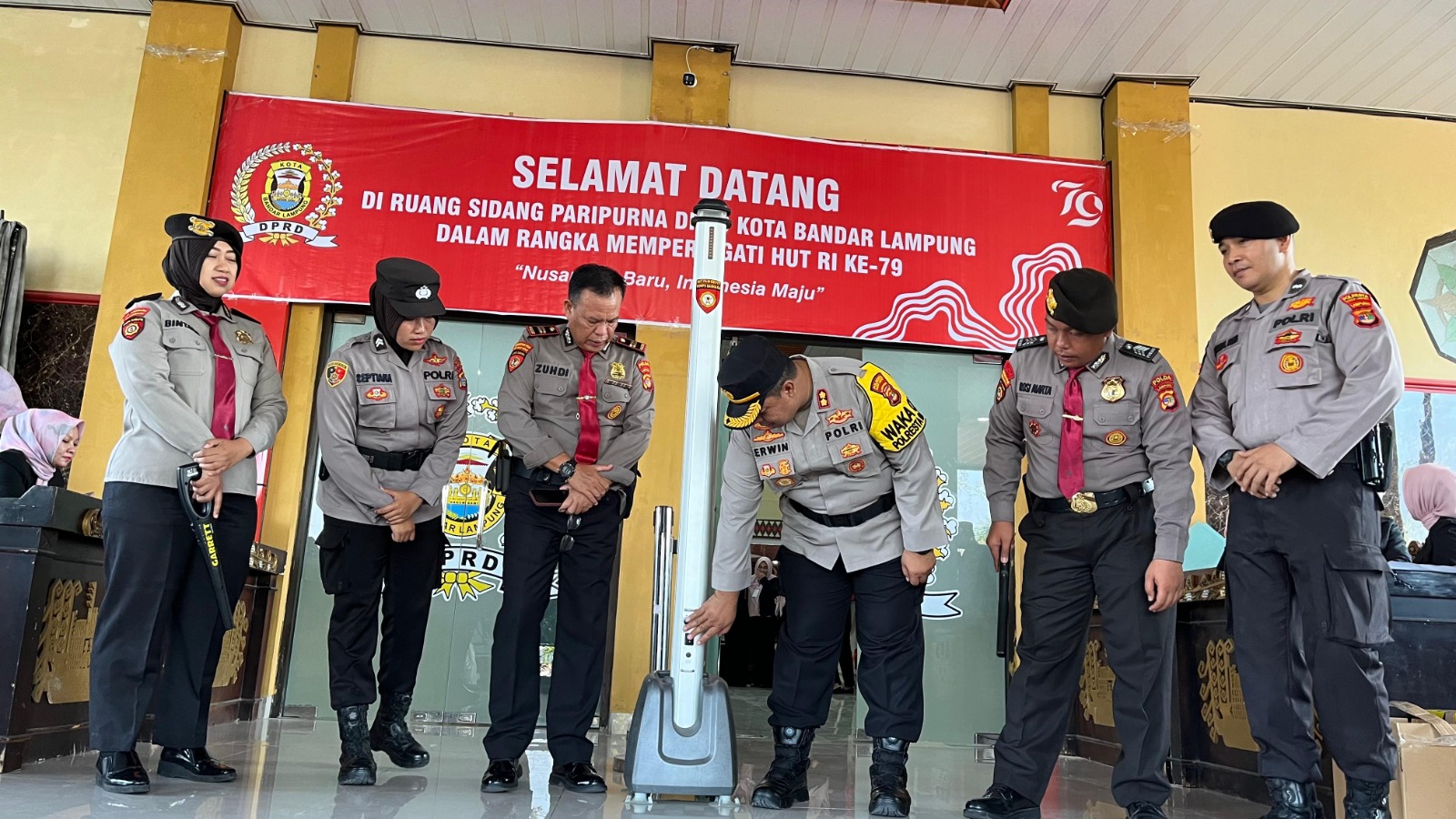 BASMITIPIKOR.COM, – Bandar Lampung —–Polresta Bandar Lampung menerjunkan 87 personelnya, dalam mengamankan jalannya kegiatan pelantikan anggota DPRD Kota Bandar Lampung periode masa jabatan 2024 – 2029, bertempat di Gedung DPRD Kota Bandar Lampung, Senin (19/8/2024) pagi.