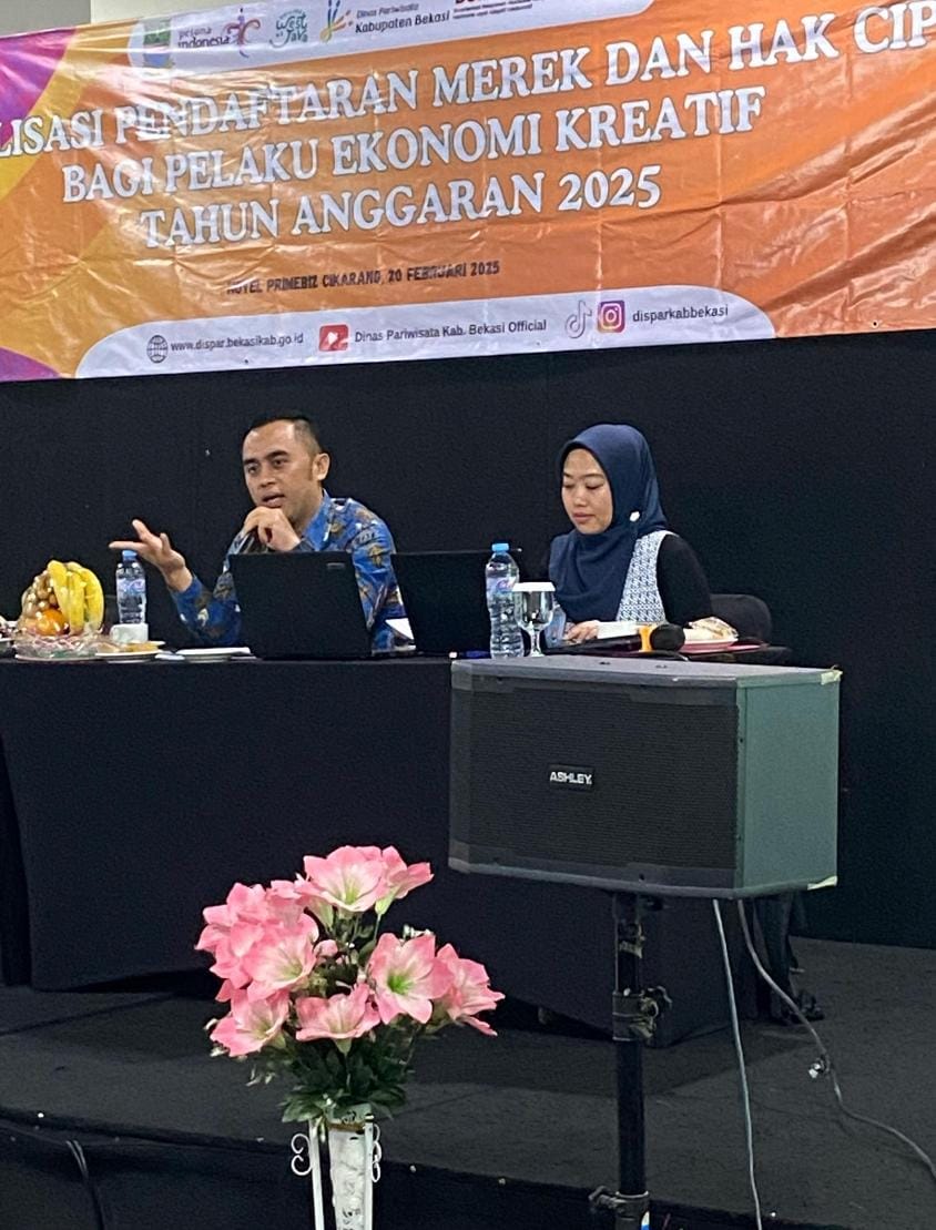 Dalam rangka meningkatkan pemahaman serta kesadaran pelaku ekonomi kreatif mengenai pentingnya perlindungan hukum terhadap karya intelektual mereka, Dinas Pariwisata Kabupaten Bekasi menyelenggarakan kegiatan sosialisasi pendaftaran merek dan hak cipta. Kegiatan ini bertujuan untuk memberikan edukasi mengenai prosedur pendaftaran serta manfaat perlindungan hukum bagi pelaku usaha kreatif.