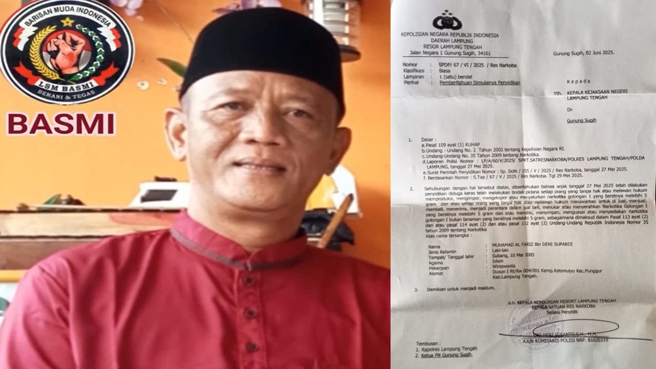 Kasus ini ditangani berdasarkan Laporan Polisi Nomor: LP/A/60/2025/SPKT.SATRESNARKOBA/POLRES LAMPUNG TENGAH/POLDA LAMPUNG tanggal 27 Mei 2025. Perkara ini juga telah dituangkan dalam Surat Pemberitahuan Dimulainya Penyidikan (SPDP) Nomor: SPDP/67/VI/2025/Res Narkoba, yang dikirimkan ke Kejaksaan Negeri Lampung Tengah pada 2 Juni 2025.
