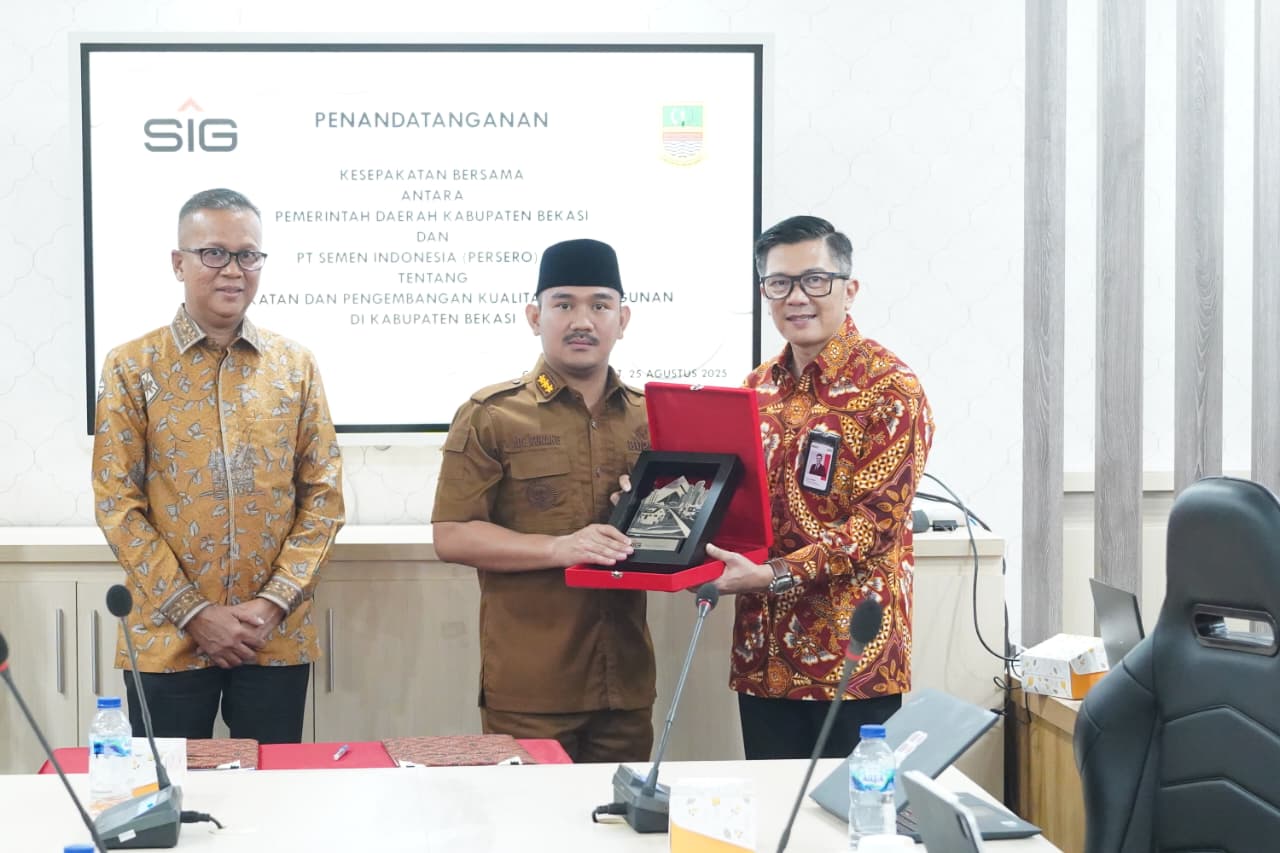 Acara penandatanganan MoU antara Pemkab Bekasi dengan SIG berlangsung di Kantor Bupati Bekasi, Komplek Pemkab Cikarang Pusat, pada Senin (25/8/2025).
